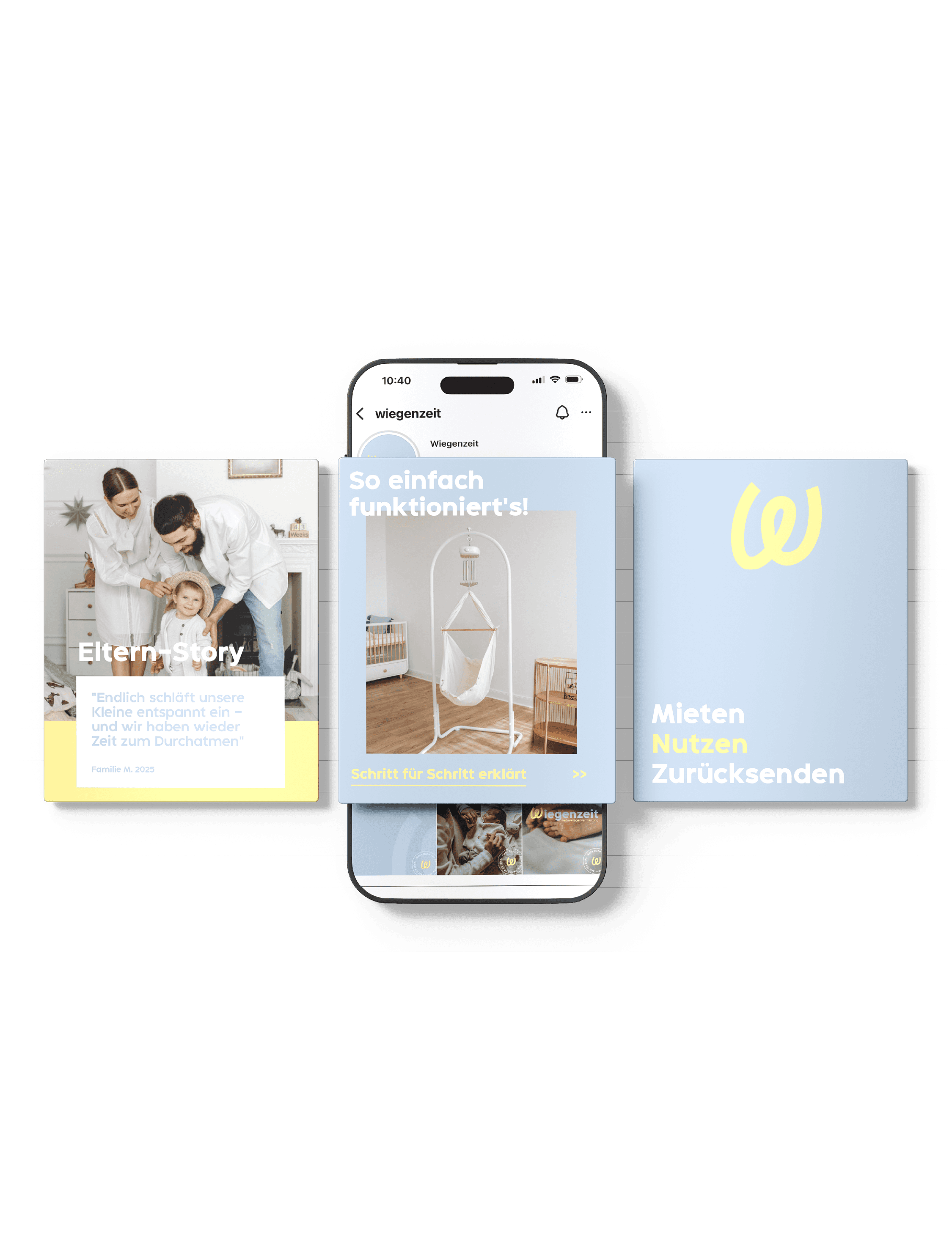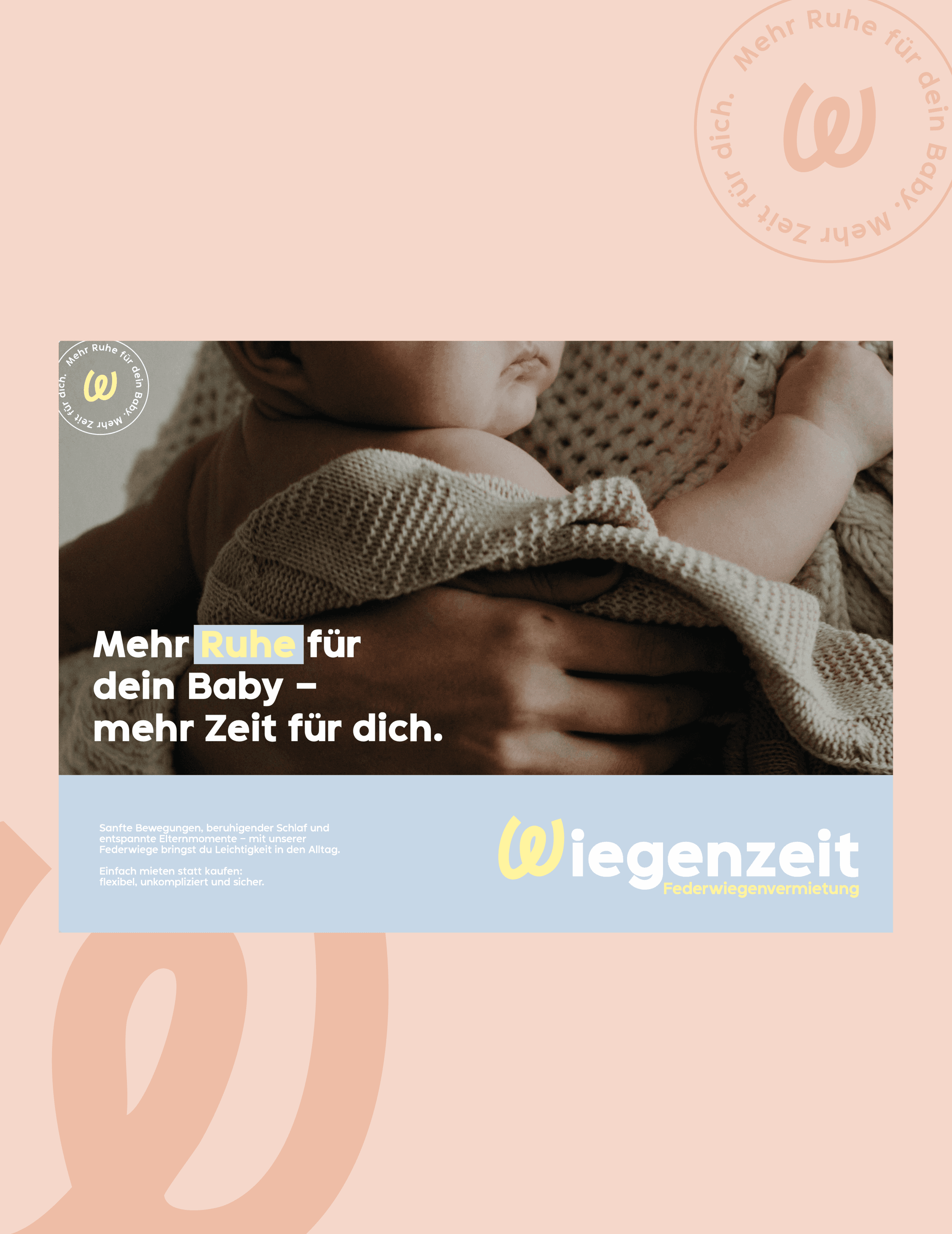 A holistic branding project for Wiegenzeit, a cradle rental service designed to support young families. The visual identity reflects a sense of calm, care, and trust, translating the brand’s values into a soft and contemporary design language.